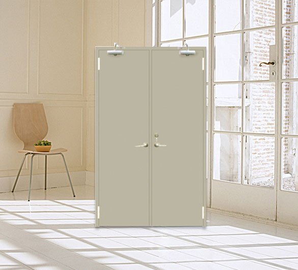 用鋼質(zhì)材料制作門框、門扇骨架和門扇面板,門扇內(nèi)若填充材料,則填充對(duì)人體無害的防火隔 熱材料,并配以防火五金配件所組成的具有耐火性能的門。